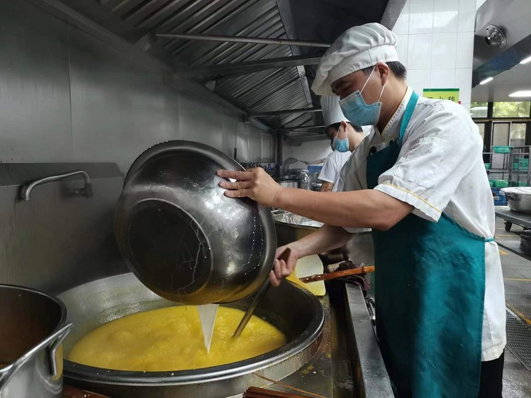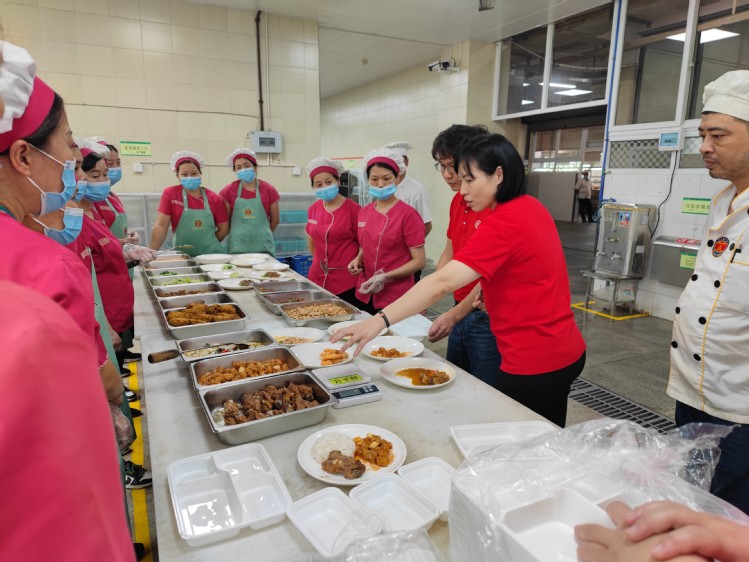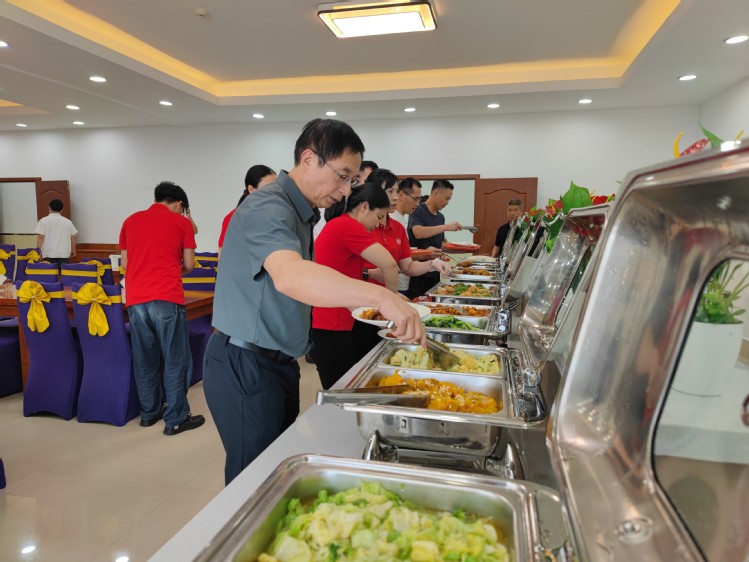 校庆前一天,饮食服务中心主任李东龙带领思明校区和翔安校区等餐厅经理、行政总厨、面点师90余人,支援漳州校区高标准完成校庆供餐工作。