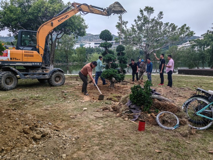 绿化员工做好校区绿篱、主干道干枯枝垂榕、高空大王椰子树枯叶的修剪,主楼周边草皮打草、种植、景观榕树,为嘉院二十年校庆增添一处美丽景观。
