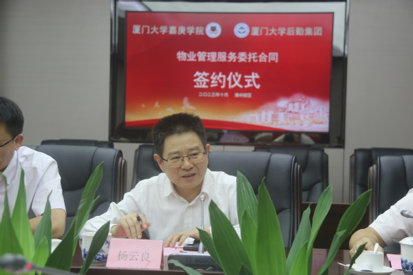 杨旸对嘉庚学院长期给予集团后勤服务保障工作的支持和肯定表示感谢,后勤集团将义不容辞地做好校区的后勤保障工作。他表示,20年来后勤集团与嘉庚学院均在各自领域取得了一流的成绩,双方有共同的命运、共同的目标、共同的责任、共同的话语。他对双方达成的共识和合作充满信心。