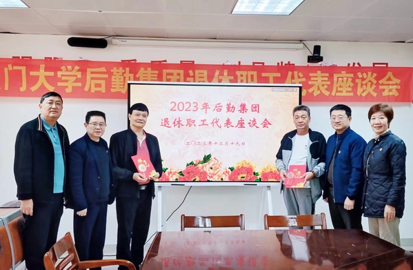 为表达后勤集团对退休职工的关爱、感谢及祝福,12月19日上午,集团组织召开2023年退休职工代表座谈会,大家欢聚一堂,以座谈会的形式来共叙集团的成长历程,共谋集团的新发展。参加退休职工代表为水电服务中心运行部经理刘景寿、饮食服务中心芙蓉餐厅厨师肖松辉。集团党委书记杨云良、总经理杨旸、党委副书记邓泽君、副总经理王裕民、职能部门及中心负责人参加座谈会。