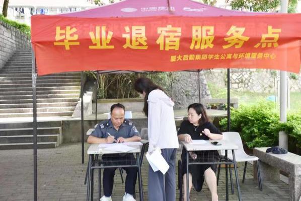 ▲厦门大学后勤集团设置了毕业退宿服务点,便利学生办理退宿事宜。