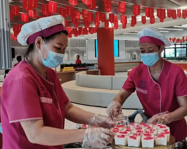 ▲厦门大学后勤集团精心准备冷餐会,通过一道道凝聚了厦大精神、文化和祝福的佳肴,给毕业学子留下一份美好记忆。