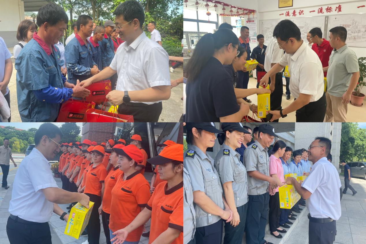 七月流火,热浪翻滚。7月19日下午,后勤集团总经理杨旸,副总经理沈雄晖代表校工会和集团到翔安校区开展夏日“送清凉”高温慰问活动,集团总经理助理、翔安校区服务办主任汪尚谦等陪同慰问。