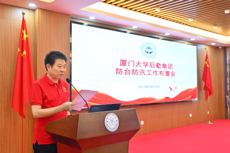 在厦门大学第十二次党代会即将召开之际,恰逢多个台风将在近期登录中国,为切实维护校园安全稳定,做好我校防台防汛工作,8月30日早上,厦门大学后勤集团召开安全稳定工作会议暨防台防汛工作布置会。集团党委书记杨云良、总经理杨旸等领导班子成员、二级管理岗正职及以上人员、部门安全工作负责人参加会议。