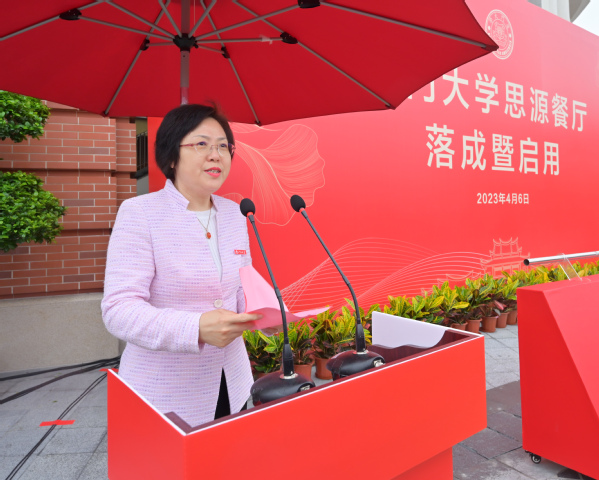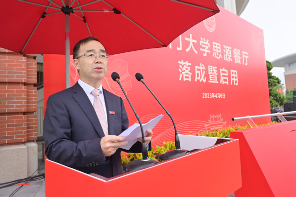 他表示,“思源”是百年厦大的文化标签之一,新餐厅以“思源”为名,是为了铭记建校以来先贤们“箪食瓢饮”的厚德懿行,弘扬嘉庚精神和厦大文化,餐厅将成为师生学习生活的“精神食粮之地”和学校开展“三全育人”的重要阵地。希望相关部门和思源餐厅着力打造兼具“时尚味、科技味、学术味、劳动味、思政味”的“五味”餐厅,以一流的后勤保障助力学校“创新引擎”高质量发展,为学校“双一流”建设贡献新的更大力量。