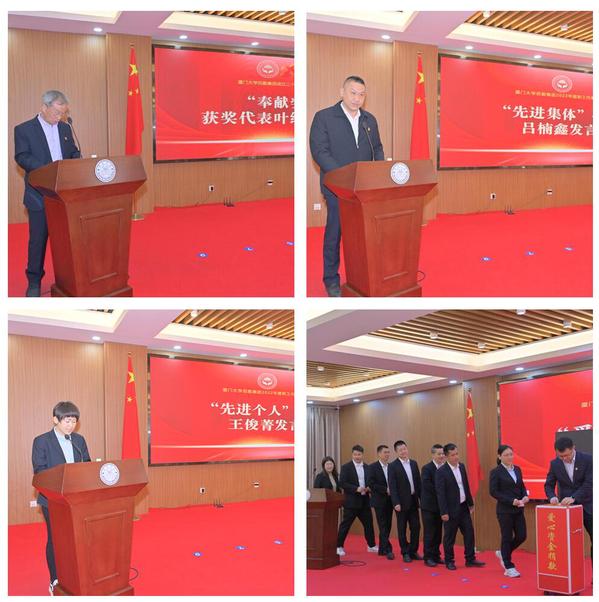 会上,集团党委书记杨云良宣读了《关于颁发厦门大学后勤集团成立二十周年特别贡献奖、奉献奖的决定》,党委副书记邓泽君宣读了《关于表彰后勤集团2022年度“先进集体”“先进个人”的决定》,校领导和集团领导班子分别为获奖人员颁奖。奉献奖代表学生公寓与环境服务中心员工叶绍灿及2022年度先进集体代表运输服务中心副主任(主持工作)吕楠鑫、先进个人代表饮食服务中心漳州校区南区餐厅主管王俊菁也分别作了发言。大会还举行了2022年度爱心资金捐款。