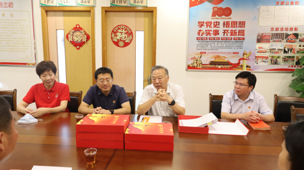 陈子辰现场查阅公寓党支部“一簿六盒”台账并座谈