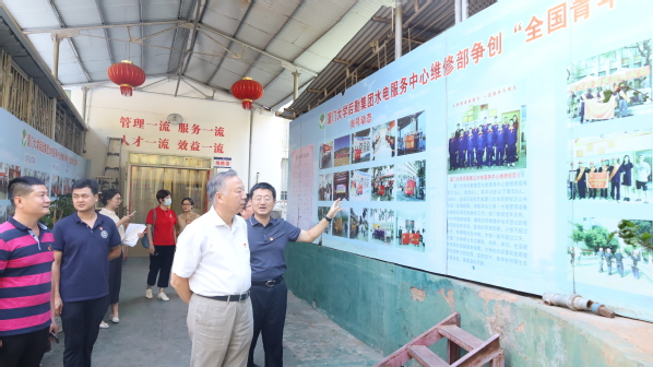 9月28日下午,教育部直属高校党建工作联络员陈子辰到厦门大学后勤集团调研指导工作,集团总经理杨旸、党委副书记邓泽君、校党委组织员兼党建办副主任葛郝锐陪同现场调研。