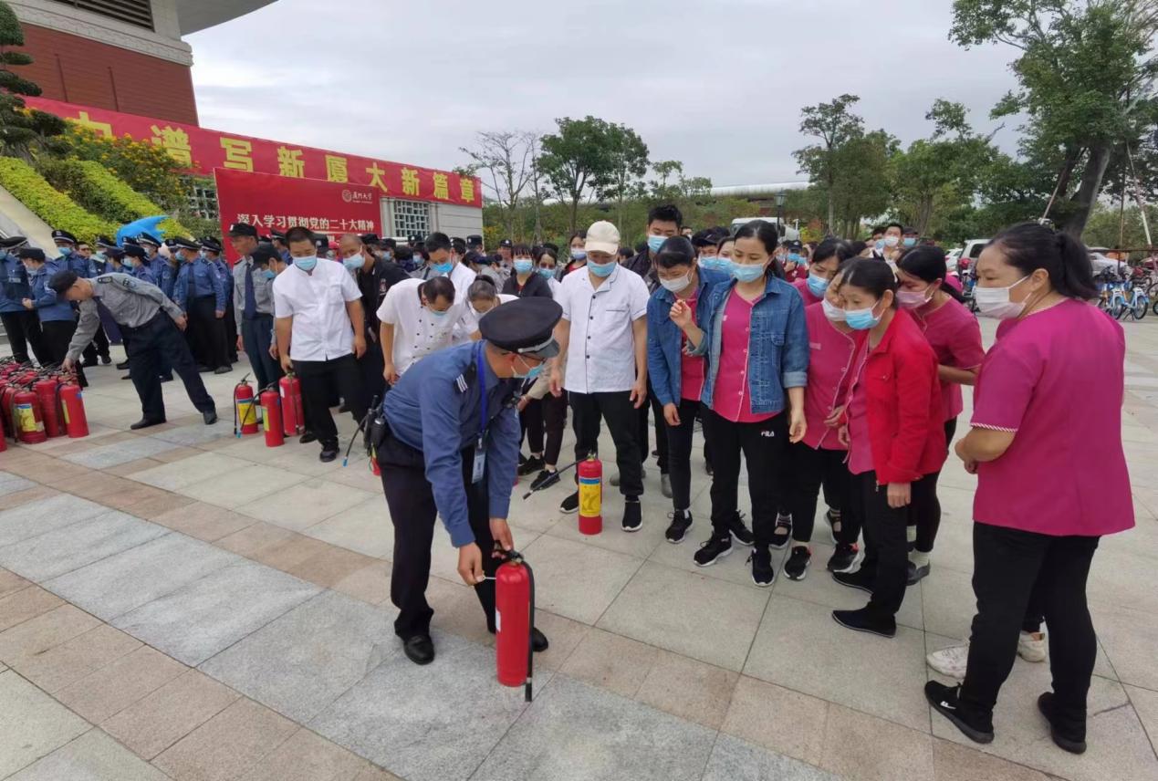 为迎接全国第31个消防日,进一步提高后勤人员的消防安全意识,提升每位员工的安全管理能力。11月8日下午,后勤集团翔安校区服务办在综合体育馆南广场开展以“消除火灾隐患,共建平安校区”为主题的消防应急演练。服务办二级岗及以上管理人员、校区店铺商户、各部门相关人员代表共200余人参演本次活动。活动由翔安校区服务办副主任郑剑培主持。