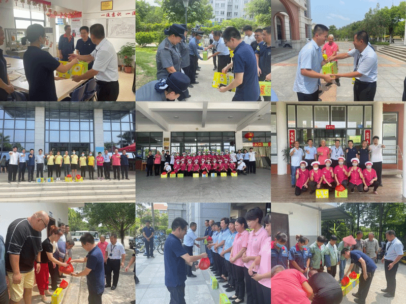 校区管委会和集团领导对大家不畏酷暑、坚守工作岗位表示衷心的感谢,将学校和集团的问候和关心传达至每一位默默挥洒汗水的员工,叮嘱他们注意做好防暑降温工作,并为他们送上绿豆、凉茶等清凉礼包。