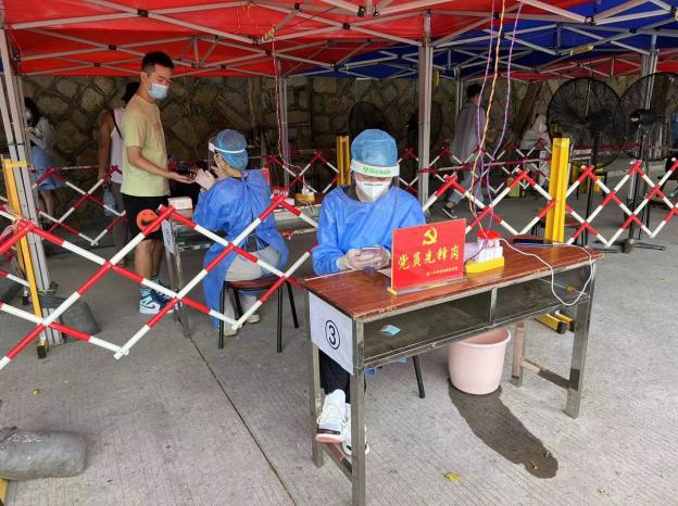 8月19日,集团共组织13名党员志愿者参与了思明校区核酸检测点的信息录入和秩序维护工作。为加快检测进度,减少师生排队等候的时间,志愿者们早晨6:00就到位,进行上岗前的专业培训,包括如何正确穿戴防护服、检测信息录入步骤和特殊操作事项等。7点开始,大家各司其职、高效有序开展检测工作,虽然天气炎热、工作反复枯燥,但是大家毫无怨言,在10:30-14:30这一阶段,有的志愿者甚至放弃吃午饭,毅然坚守岗位,不间断地进行检测工作。在现场医护人员和志愿者们的共同努力下,核酸检测工作顺畅有序完成。