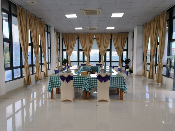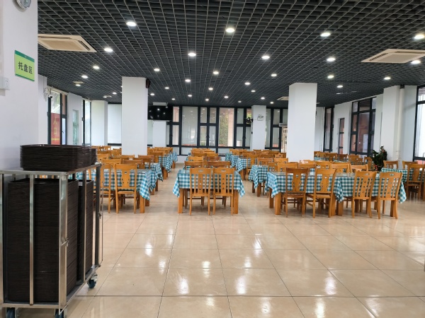食堂用餐大厅的地板及墙面全面粉刷翻新,增加照明灯,整个大厅简洁、明亮、通透,清爽用餐环境展现无遗。重新布局桌椅,营造舒适愉快的用餐氛围。绿植装点就餐区,老师们在用餐期间可感受一份生机与安静,愉悦就餐心情。