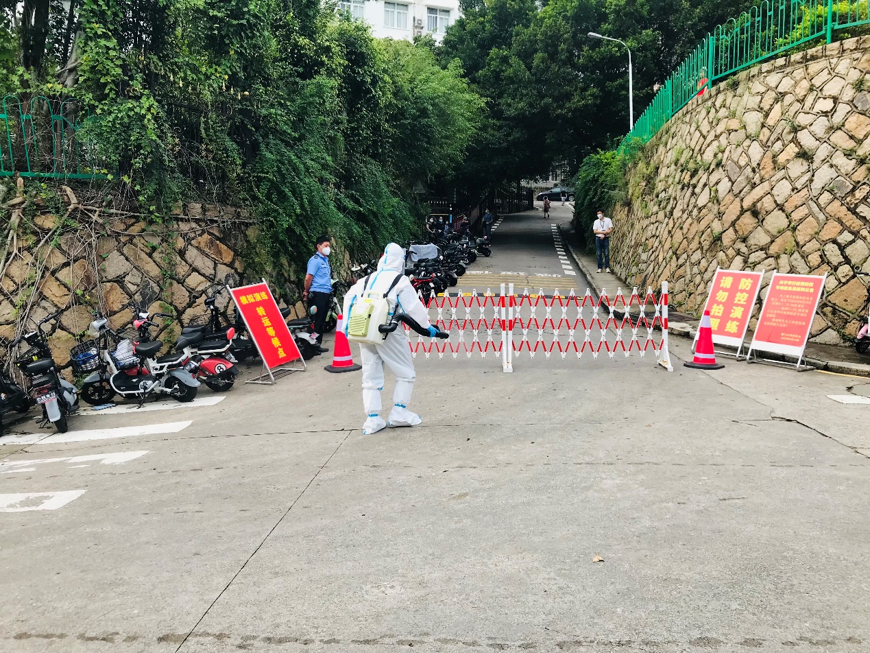 (南强物业消杀人员按要求穿戴好防护服开展消毒消杀工作)