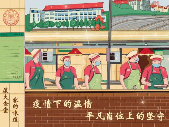 疫情期间,校园封闭管理对餐饮部是一个巨大的挑战。为了保证师生们能吃上健康安全的热乎饭菜,餐饮部迅速制定了分时段错峰供餐方案,并从校外暂停服务的附中餐厅和芯云谷餐厅调配人员支援校内餐厅,提高供餐能力。按照集团“管好自己的人,做好自己的事”的要求,坚决贯彻疫情期间员工管理规定,餐厅所有员工一日两次进行岗前体温检测,消毒人员在餐厅开餐前及营业结束后进行环境大消毒;不断强化冻库管理人员、厨师团队的食品安全意识和技能;保证各项物资的采购、验收、储备和供餐有序。在提高供餐效率、延长供餐时间、保证服务质量、做好疫情防控这一系列工作的背后,是厦大餐饮人默默的牺牲与奉献。