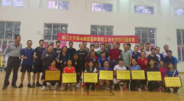 11月20-21日,厦门大学“嘉盟杯”第四届教职工羽毛球赛在思明校区风雨球馆进行,后勤集团两支战队经过奋力拼搏,过关斩将,特别是后勤集团1队在全校32支“战队”角逐中脱颖而出,创造有史以来最好的成绩——勇夺第三名,比出能打胜仗的后勤人精神,赛出永不服输的后勤人风采。