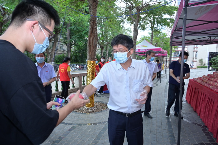 10月6日11:00,恢复堂食的第一天午餐,思明校区勤业餐厅门口小广场,开展主题“守得云开见月明 担当奉献彰本色”的恢复堂食“送苹果·报平安”活动,为每个用餐师生员工送上一个苹果,祝愿平安健康。这是后勤集团各餐厅继中秋节送每个同学一个月饼之后再一次为师生员工送“平安”。