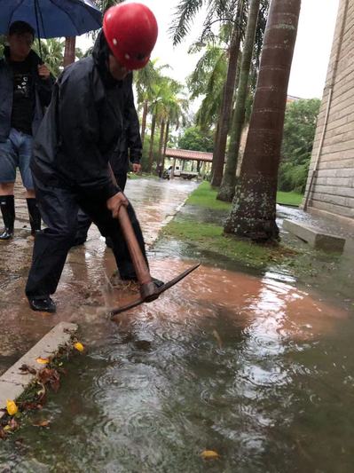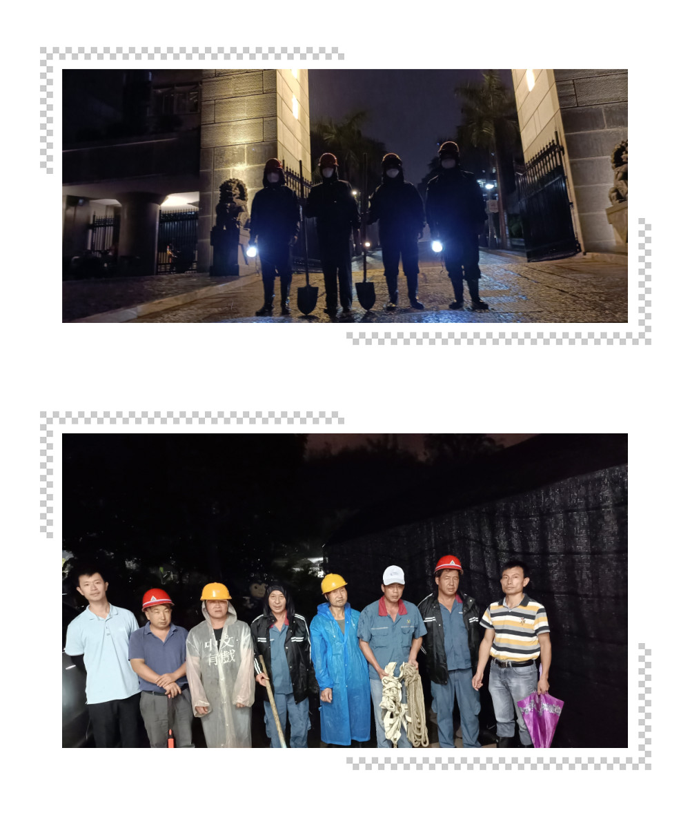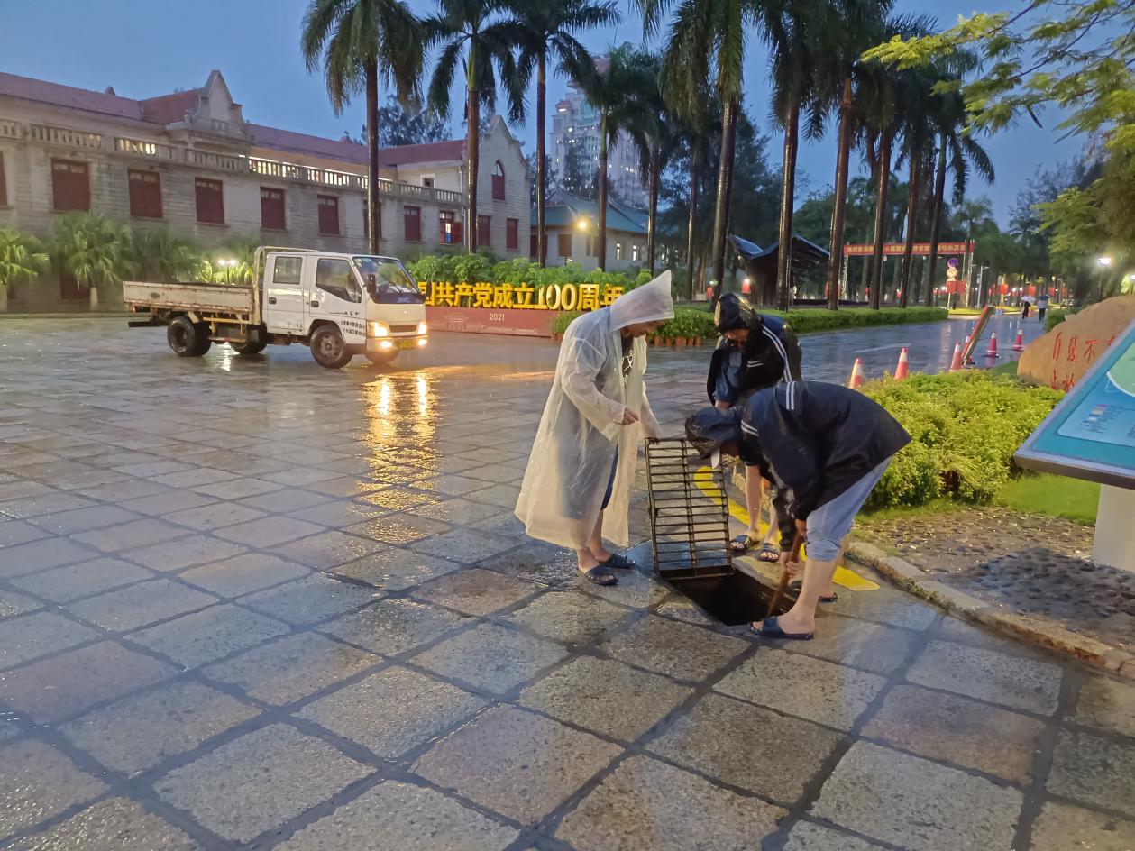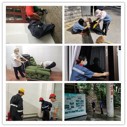 暴雨中,集团领导深入到西校门、凌云水库、地下井水泵房、科艺高压室、海韵高压配电房、图书馆周边低洼带等重点区域查看,抢险队及时清理雨水井口、排水沟堵塞树叶、垃圾等。暴雨后,各抢险队又加快道路清障,及时处理、扶正、加固倒伏、折断树木,为师生营造一个安全整洁的校园环境。