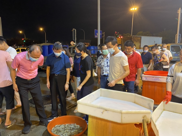 最后,陈有亮一行带队前往中埔市场考察海鲜原材料,了解掌握产品质量、价格、产地、相关凭证及溯源等行情动态。