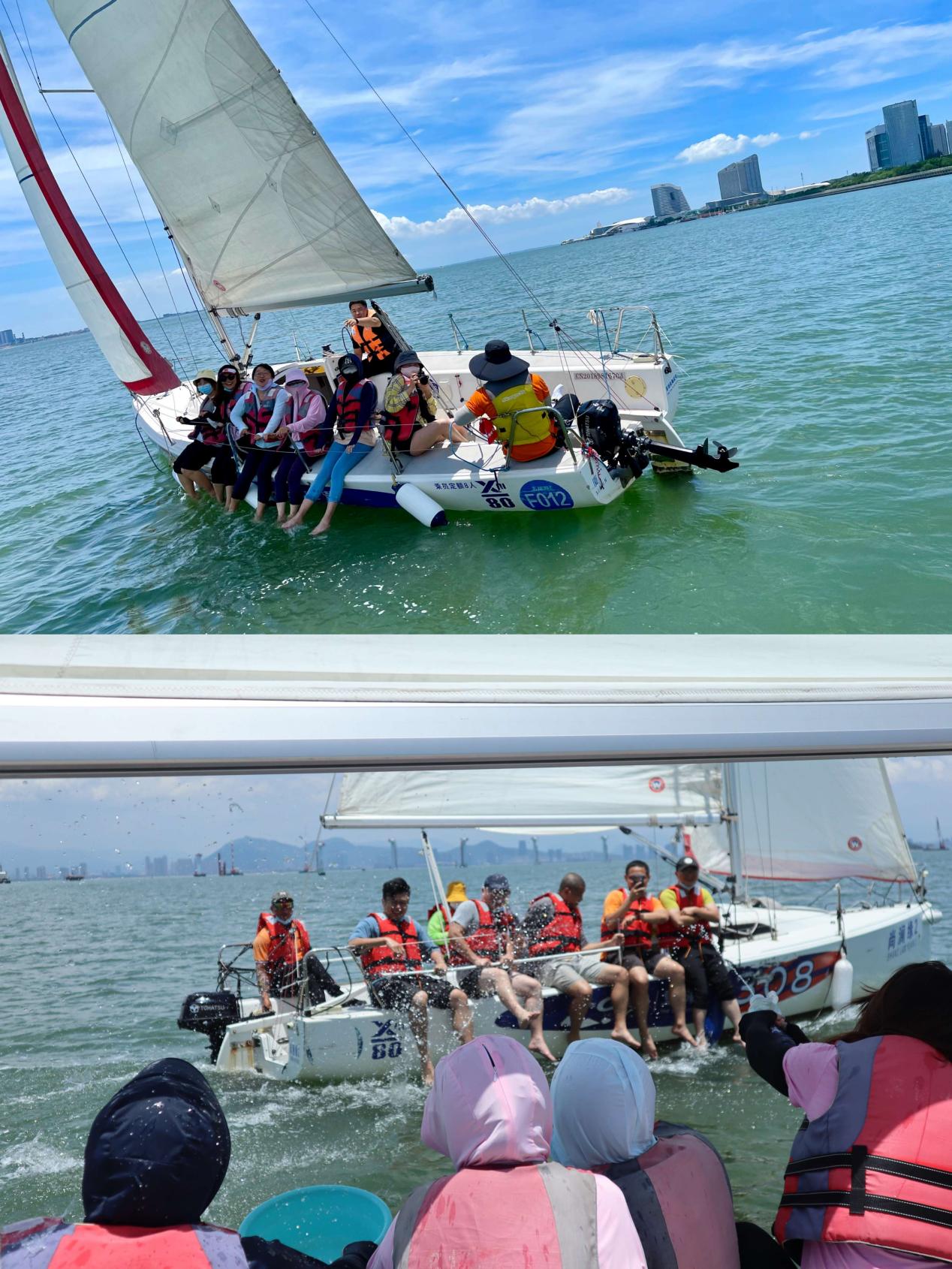团队建设项目结束后,最精彩的“扬帆起航”活动在海上展开,炎炎烈日抵挡不了队员们对蓝天碧海的向往,他们怀着憧憬和热情,搭上帆船,迎风出发,在蔚蓝海洋中感受和体验大自然的魅力。