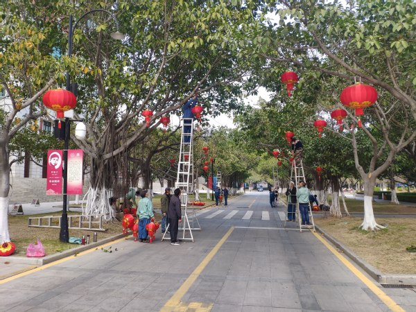 悬挂灯笼,张贴春联,布置喜庆氛围。春节前夕,学生公寓环境服务中心、南强物业公司还负责布置喜庆氛围,在校区主楼周边、嘉庚广场、校园主干道等布置了喜庆红灯笼,在各学生宿舍门口张贴喜庆的春联,让整个干净整洁的校园到处洋溢着喜庆祥和的节日氛围。