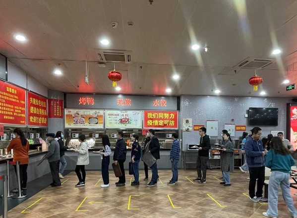 校内各食堂管理人员引导用餐师生文明排队,礼貌用餐,厉行节约,践行“光盘行动”。