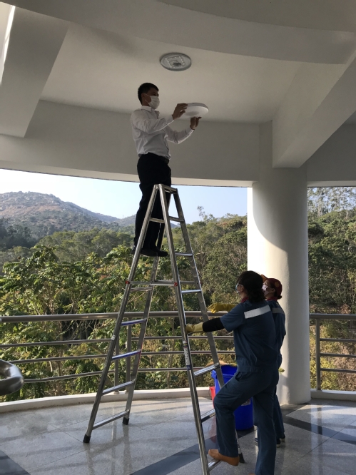 在做好卫生保洁、疫情防控的同时,学生公寓环境服务中心还组织校园环境绿化提升、学生宿舍设备检修,洗衣房推广一人一桶洗衣机,为学生营造一个温馨美丽安全的如家环境。