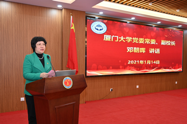 邓朝晖表示,2020年,在以习近平同志为核心的党中央的坚强领导下,校党委带领全校师生员工,织密织牢疫情防控网,保持工作节奏不变、力度不减,以新时代的厦大自强精神,奋力夺取疫情防控和改革发展的双胜利,以攻坚克难、争创一流的实际行动,践行初心使命,书写了教育的奋进之笔。她进一步强调,2021年是建党100周年、建校100周年,是“十四五”规划开局之年,是第二个百年奋斗目标新征程的开启之年。她对后勤集团员工提出四点希望:毫不放松抓懈好常态化疫情防控、要牢固树立服务育人的理念、坚持不懈抓好“三提升一自救”、扎实做好百年校庆服务保障。