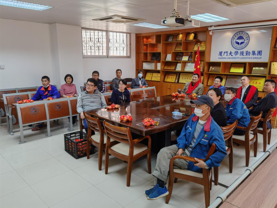 2月5日上午,厦门大学举行以“喜迎百年新征程”为主题的2021年新春云茶话会,共迎新春佳节,茶话会以“线上”和“线下”相结合的方式举行,主会场在科艺中心二楼大厅,后勤集团党委书记杨云良和副总经理刘君彬、王裕民,与抗疫优秀共产党员、先进个人等在集团会议室观看网络直播。