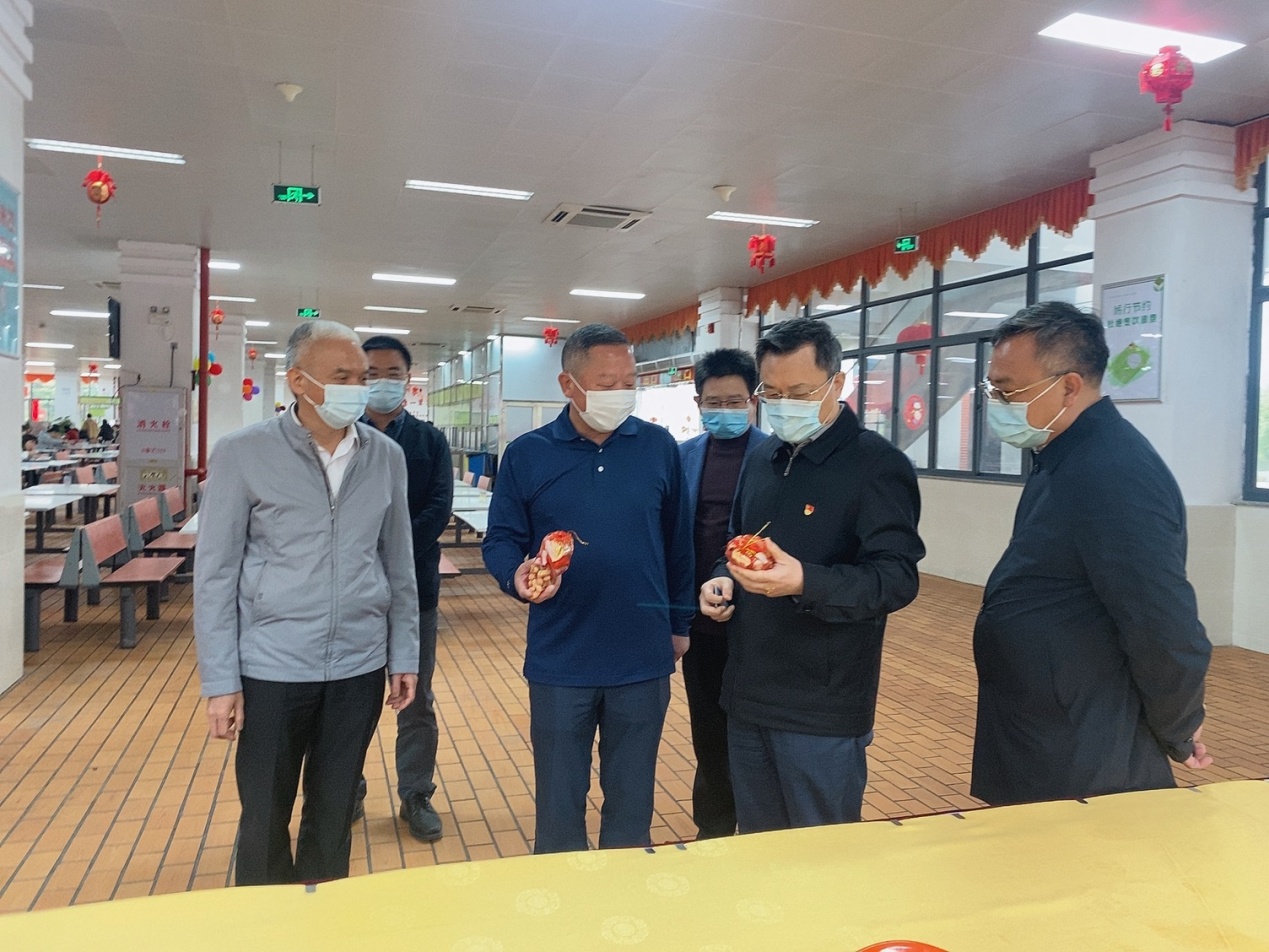 在校区餐厅,集团领导还仔细询问了解假期餐饮保障及年夜饭准备情况,强调年夜饭既要美味,吃出新滋味,又要避免舌尖上的浪费,同时要做好食堂春节氛围营造,让留校过年的学生感受到家的温暖。