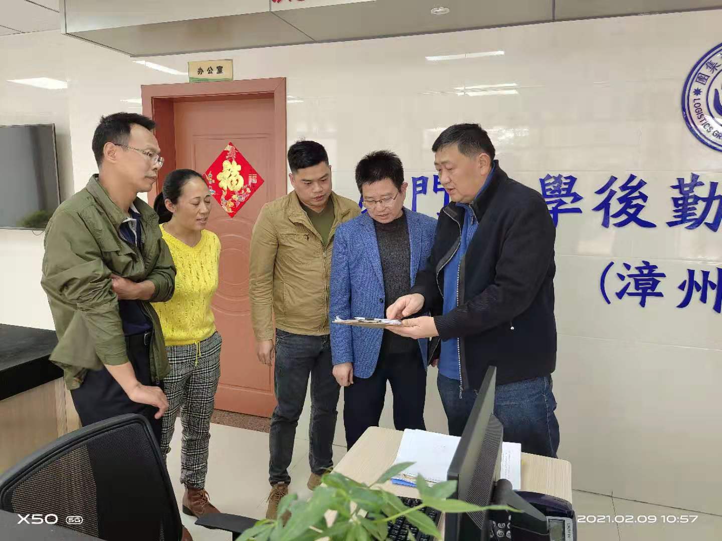 2月10日,校党委书记张彥书记、校长张荣,分别到翔安校区查看八闽园建设、餐厅年夜饭准备、与师生座谈,集团党委书记杨云良、总经理林公明、副总经理王裕民,集团总经理助理、翔安校区服务办主任汪尚谦,集团办公室主任林琳等参加。
