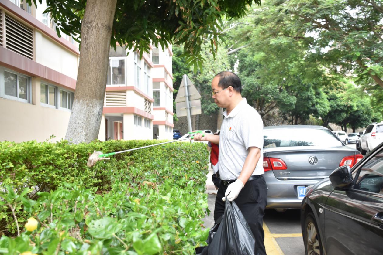 党员志愿者还分成几个小组捡拾校园公共区域的烟头。他们身穿红色马甲,手拎垃圾袋和夹子,认真地捡拾主次干道边、树丛下、绿化带中的烟头、垃圾,用无声的行动传递文明力量,影响和号召学校师生共同维护整洁美丽的校园环境。