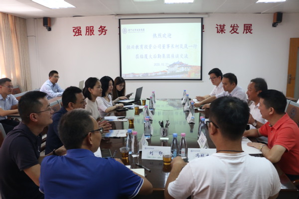 10月28日上午,厦门恒兴集团有限公司董事、厦门市恒兴教育投资有限公司董事长柯岚岚一行来访集团,双方就厦门市华东师范大学希平双语高级中学筹办合作事宜进行沟通交流,集团总经理林公明、副总经理刘君彬,集团办公室主任林琳、饮食服务中心主任江森民等参加。