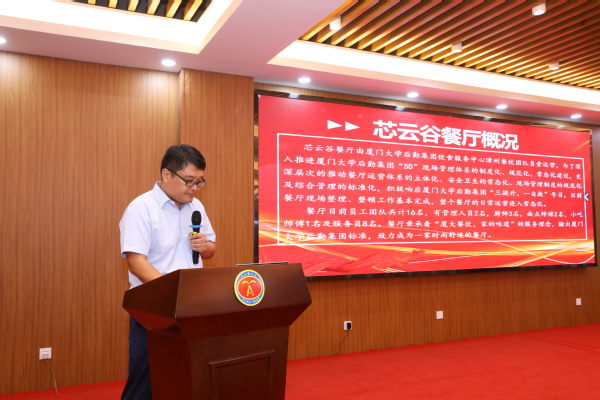 饮食服务中心主任江森民汇报了中心近期开展“三提升,一自救”工作情况。饮食服务中心创新思维,改变管理方式,机修组设立“制冷、电工安全、制作”三个小组并委任小组长,在实践中实现“师带徒”“老带新”“强带弱”,优化提升效率;召开厨师团队“技术提升”研讨会,抓好厨师团队的技术提升,促进各餐厅整体餐饮技术水平提升;开展有针对性的服务提升项目,如服务礼仪标准培训等;各餐厅推出特色菜肴,促进了营业额的恢复;拓展漳州招商局芯云谷餐厅和中国光大银行厦门分行餐厅,扩大市场份额。