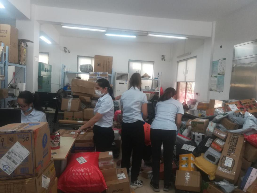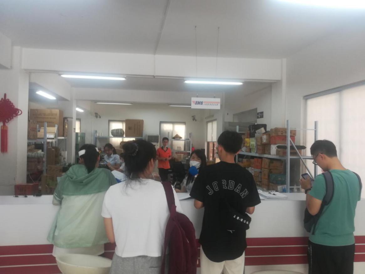 邮政服务人员认真做好邮件的分类整理,帮助新生能及时取到快递包裹。