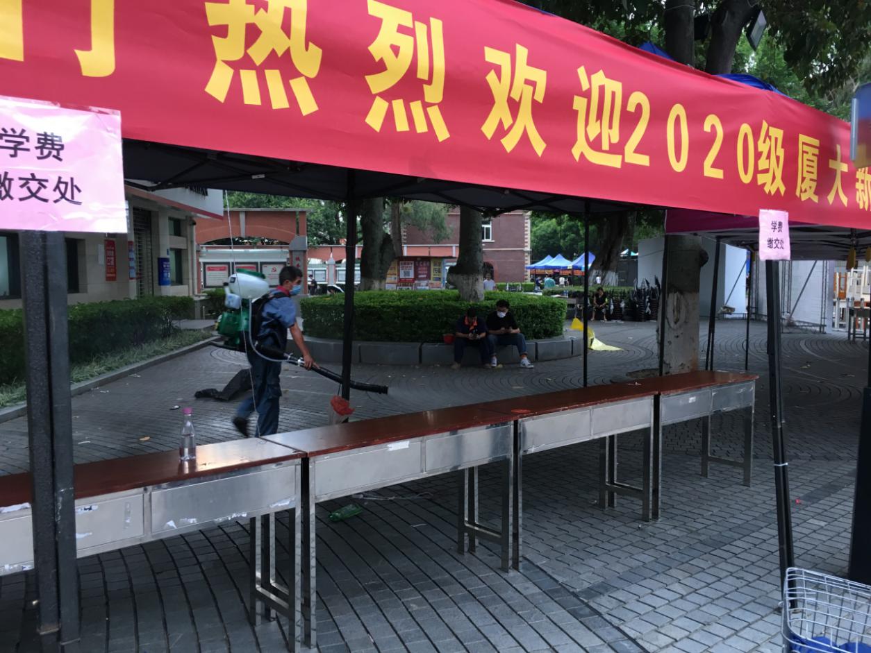 此外,中心再次对迎新点及校园环境进行消杀清理、美化布置,以安全、卫生的环境迎接新生。