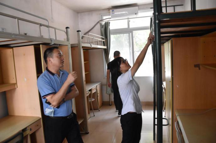 其实,中心的迎新工作从毕业生离校后就开始了。毕业生离校后,中心立即组织员工对空宿舍进行清扫消毒、检查设施设备,为新生入住提前做好准备。