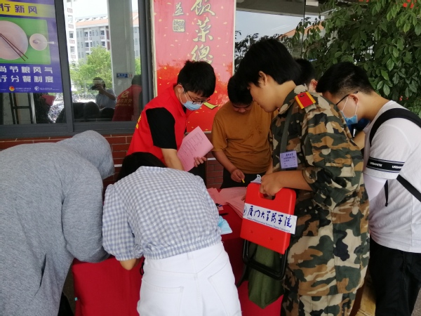 思明校区活动现场,厦门大学党委常委、副校长邓朝晖,后勤集团党委书记刘立荣、总经理林公明、副总经理陈有亮,资产与后勤事务管理处副处长王沈扬,信息学院党委副书记龙坚毅,共青团厦门大学委员会秘书姚东明,后勤集团办公室主任林琳,饮食中心主任江森民,学生志愿者代表、党员志愿者代表等参加活动。