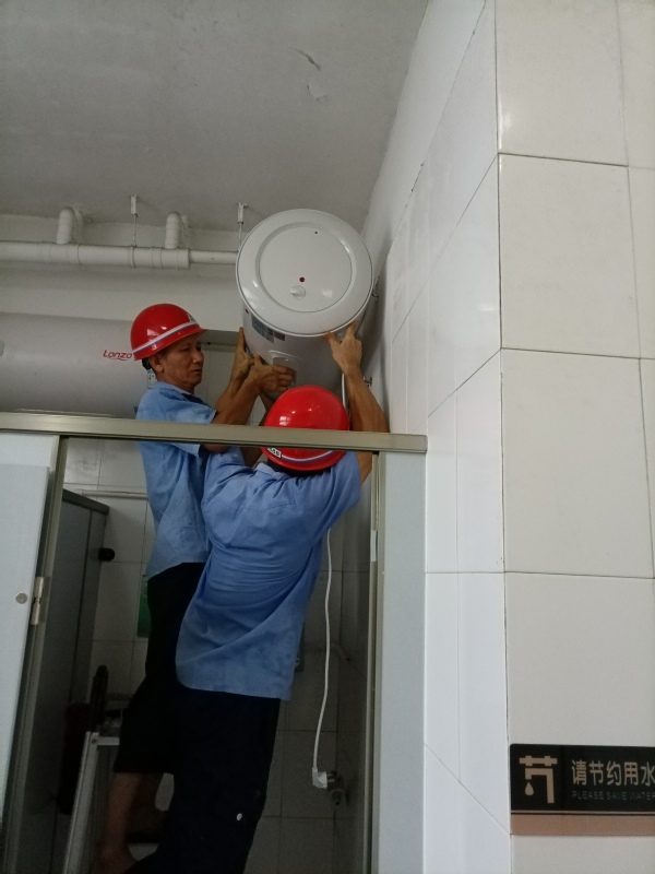 漳州校区学生宿舍热水器改造工程进行线路布设及新旧热水器更换工作