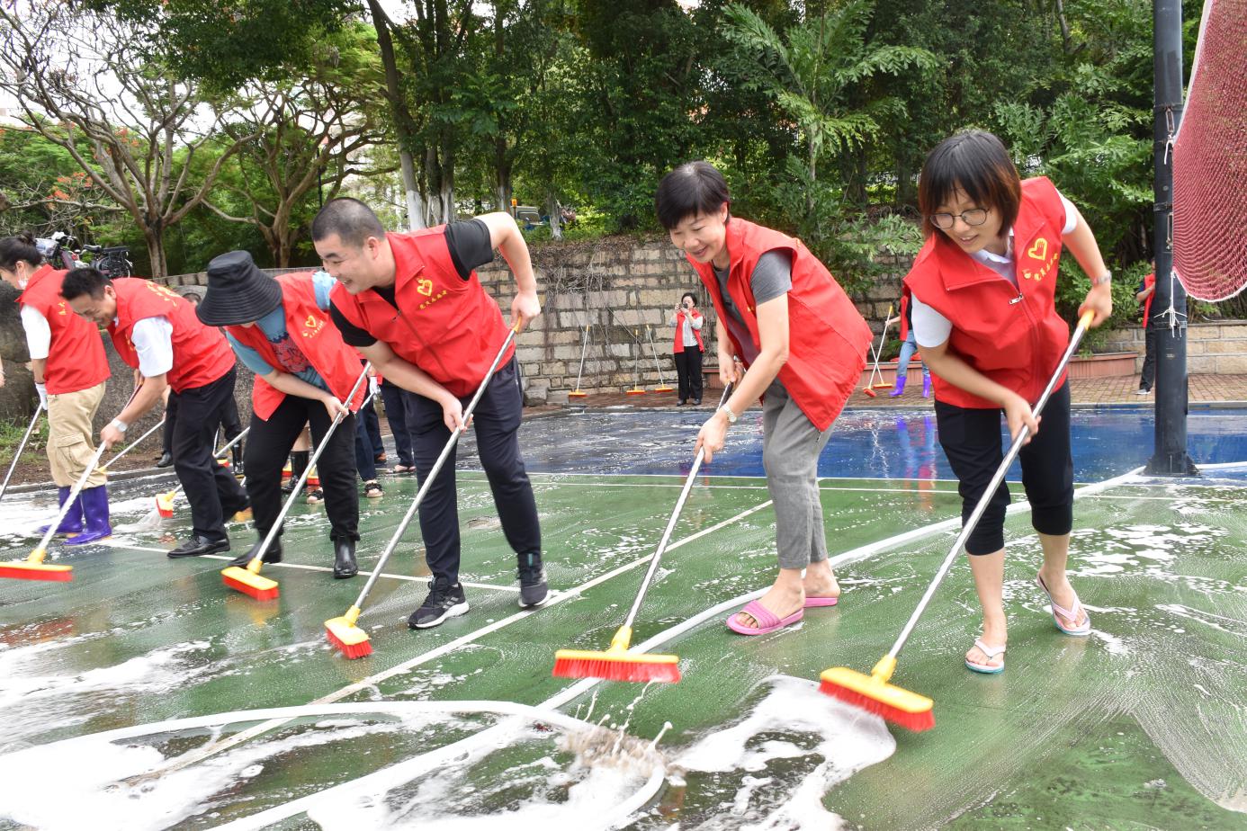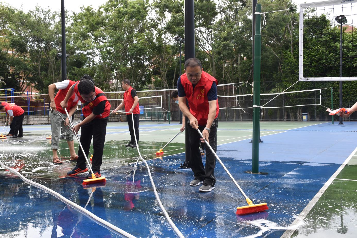 联系支部的集团党委副书记邓泽君、集团副总经理刘君彬带头参加了活动。经过大家一个多小时齐心协力的清洗,东苑排球场又恢复了干净整洁的面貌。