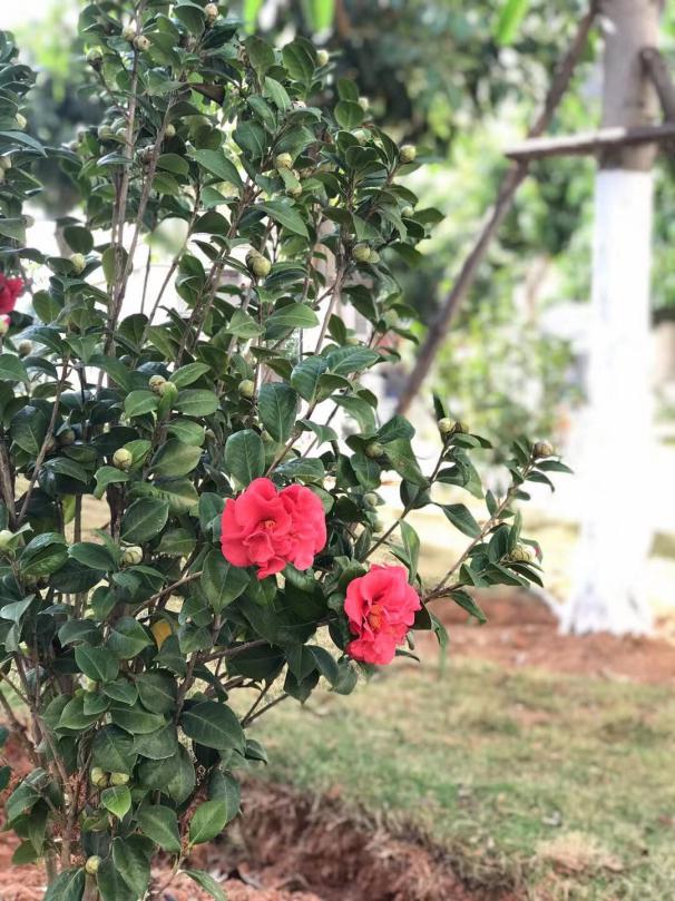 有绿而清新,有花而绚烂。如今,这批茶花正茁壮成长,相信不用多久,茶花将开满整个校区,成为一道烂漫多姿的风景线。