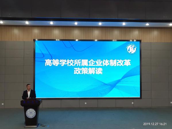 (林公明为参会代表详细解读了《高等学校所属企业体制改革的指导意见》)