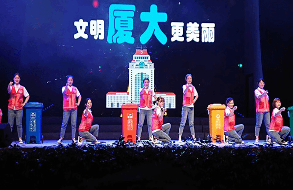 晚会现场,雄浑大气的开场舞《鼓舞千秋》充分展示了身处新时代的后勤人奋力拼搏、破浪前行的豪情壮志;活泼生动的快板《锅碗瓢盆曲——靠谱饮食人》情景再现饮食人对 “厦大餐饮、家的味道”与“德诚勤安”那孜孜不倦的永恒追求;优雅得体的《会务礼仪展示》通过仪态端庄、规范到位的服务环节展示,有力凸显了会务礼仪对于成功办会不可或缺的重要性。刚劲有力的舞蹈《后勤好战士》凭借举手投足、整齐划一的规范动作令台下观众一睹“特别能吃苦、特别能奉献、特别讲团结、特别能战斗”的后勤安防队伍那精诚团结、奋发向上的飒爽风采。匠心独运、巧妙糅合瑜伽元素的现代舞《九儿》传神演绎了胸怀家国、反抗封建的奇女子九儿那坎坷悲壮的一生。新颖趣味的现代舞《垃圾分类新时尚》将垃圾分类的意义、方法与我校师生教工日常生活无缝衔接,在轻松跳跃的节拍、便于记忆的韵脚之间,传递了“绿色校园从我做起”的新时尚理念。气势磅礴的大合唱《赛马》以奔放的旋律与跃动的节奏写意描绘了一副后勤人策马扬鞭、活跃奋进于高校后勤服务保障战线的火红场景;慷慨激昂的大合唱《歌唱祖国》那雄壮豪迈、高亢嘹亮的歌声中唱出了后勤人的拳拳赤子之心与浓浓爱国之情。