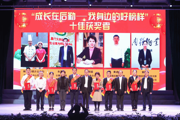 为充分展现2019年后勤集团“人才建设年”人才队伍建设成果,宣传优秀员工的榜样事迹,在集团内掀起“树榜样、找差距、学先进”的热潮,1月12日晚,2019厦门大学后勤集团“成长在后勤--我身边的好榜样”颁奖暨职工晚会在建南大会堂隆重举行,校资产与后勤事务管理处处长苏清伟、集团领导班子、二级岗及以上管理人员、支部书记、工青妇委员、全体受表彰人员和员工代表参加了本次晚会。