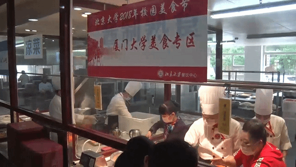 2018年4月,饮食服务中心受邀参加北京大学“名校名厨进北大”——庆祝北京大学建校 120 周年校园美食节活动,中心主任江森民率队,带上最能体现厦门风味且最具厦大特色的小吃“沙茶面”、“面线糊(配油条)”、“五香条”及“金砖豆腐”赴北大之约,菜品和服务得到了北大师生的众多好评和点赞,同时与北大餐饮中心同仁结下了深厚的友谊。