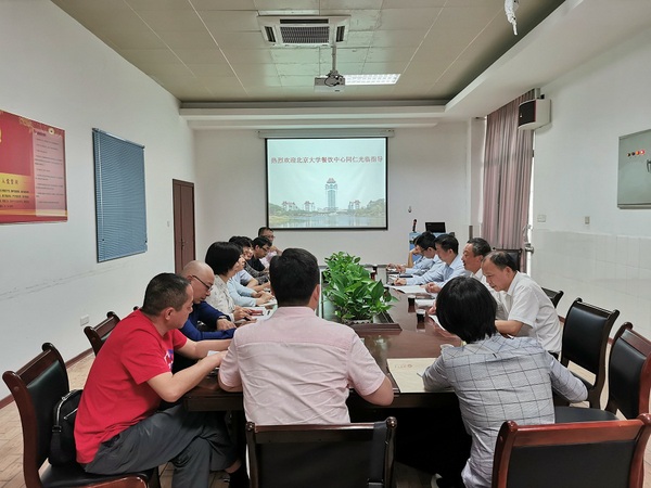 11月18日,北京大学餐饮中心一行到访饮食服务中心,集团总经理林公明、副总经理陈有亮及饮食服务中心相关人员给予热情迎接。这是双方继2018年4月在北京大学建校120周年校园美食节活动之后的又一次深入交流。