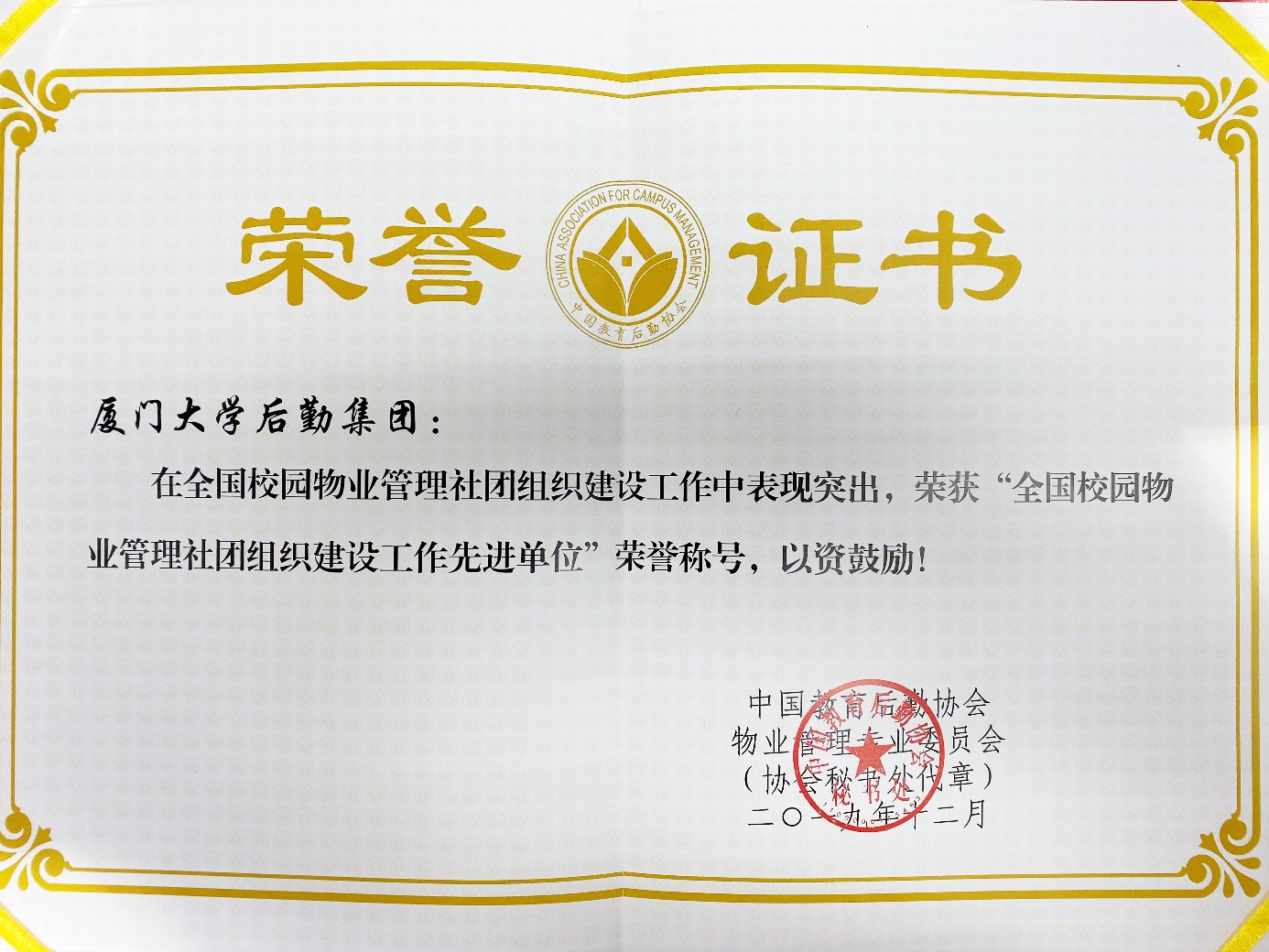 大会同期举行了“全国校园物业管理社团组织建设工作先进单位及先进个人”表彰仪式,后勤集团荣获“全国校园物业管理社团组织建设工作先进单位”称号,后勤集团副总经理刘君彬代表集团上台领奖。
