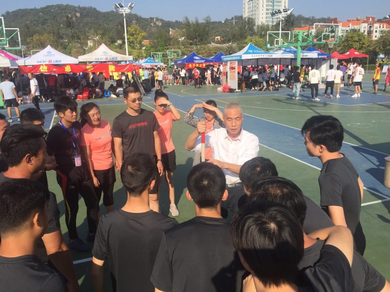 学校工会常务副主席叶鹏飞为接力赛运动员作讲解示范