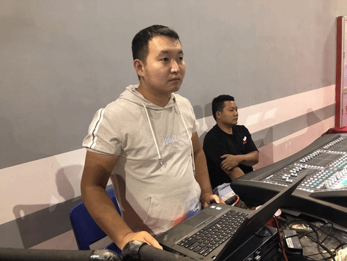 综合体育馆工作人员深夜调试舞台的灯光、音响