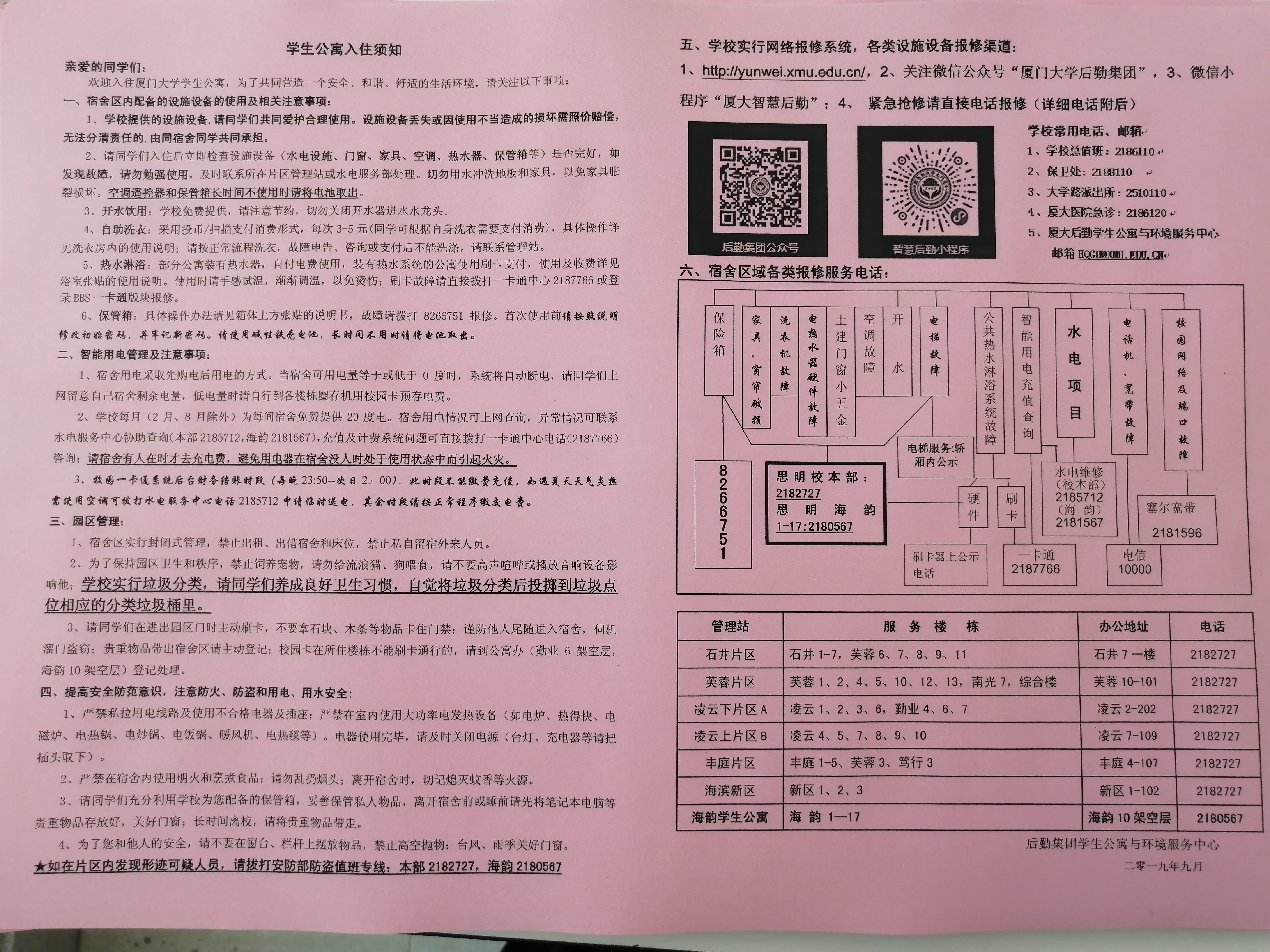 凤凰花又开,欢迎新同学。9月10-11日,近万名2019级新生如期到校报到。根据学校、集团的统一部署,学生公寓与环境服务中心经过充分准备,顺利完成新生入住办理、迎新校园环境保洁、校门秩序维护、新生大件行李托运等相关服务保障任务。