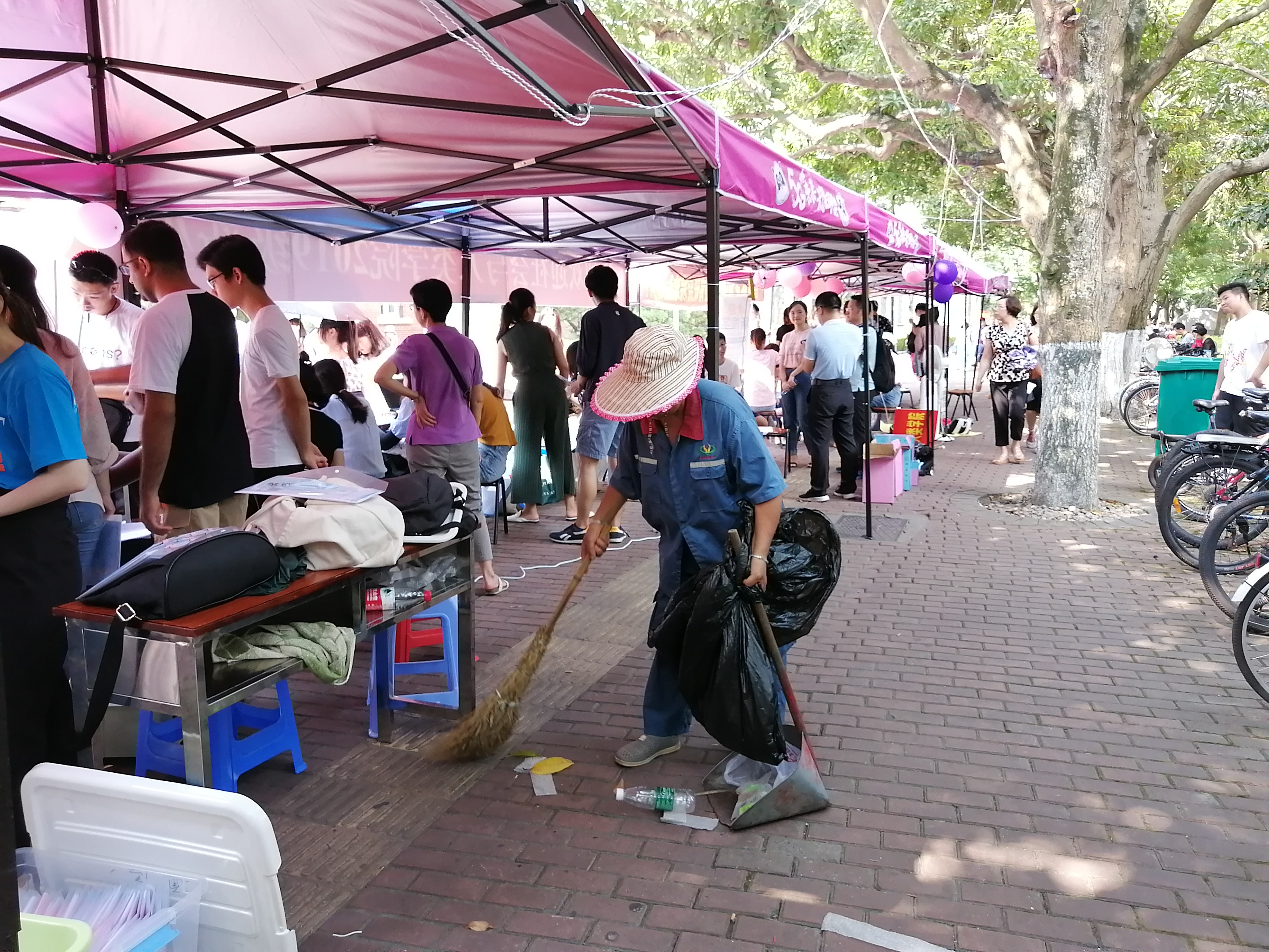 迎新期间,中心共增设校园环境保洁岗60人次、增放垃圾桶40个,开展全天候不间断进行流动保洁并及时清运垃圾,确保迎新现场干净整洁。